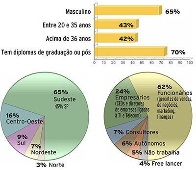 Abaixo, informações de perfil e de distribuição de leitores no Brasil.![]()
