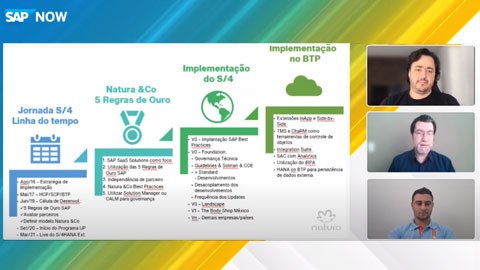 Michael Uhlig, gerente de projetos SAP na Natura&Co, diz que, entre 2016 e 2018, o processo incluiu a utilização do SAP HANA Cloud Plataform, hoje conhecido como Business Technology Plataform, implementações de soluções, extensões e integrações com o legado da companhia. Em 2019, foi criada uma célula de desenvolvimento, com a atuação de parceiros, para adotar as cinco normas da metodologia SAP e validá-las no modelo de construção de soluções da Natura&Co.