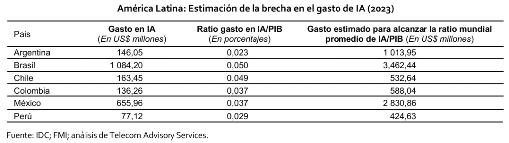 Segundo a Cepal, mesmo o valor dos aportes no Brasil na nova onda tecnológica, esse valor é cerca de 30% do que seria proporcional à dimensão econômica do país, estimado em US$ 3,46 bilhões, frente aos ganhos potenciais da IA.