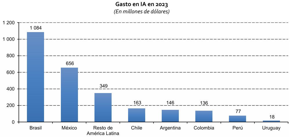 O estudo, financiado pela União Europeia, destaca que Brasil e México concentram os maiores gastos em IA na região, seguidos pelo Chile, que surpreende ao superar economias maiores como Argentina e Colômbia. Enquanto o Brasil investiu US$ 1,08 bilhão em 2023, o Chile destinou US$ 163 milhões — valor proporcionalmente alto quando ajustado por população e PIB. Já Argentina e Peru aparecem entre os mais atrasados, com investimentos abaixo da média regional.