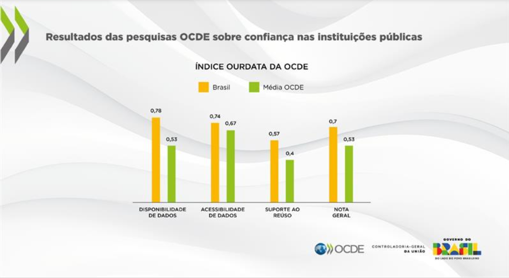O Brasil alcançou o melhor desempenho de sua história no índice da Organização para Cooperação e Desenvolvimento Econômico (OCDE) que mede a efetividade das políticas de dados abertos dos governos. No ranking mais recente do OURData Index, o país obteve 0,70 ponto em uma escala que vai de 0 a 1 e ficou na oitava posição entre 41 países analisados.