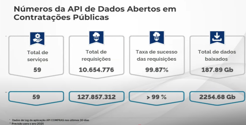 Ao apresentar novas ferramentas nesta quinta, 24/4, no webinário ‘Transparência e Dados Abertos em Contratações Públicas’, o Ministério da Gestão reforçou o avanço das ferramentas digitais que ampliam o acesso a informações sobre compras governamentais. Entre os destaques estão a API de Dados Abertos e o Repositório de Dados de Contratações Públicas, já disponíveis no Portal de Compras do Governo Federal, que registram cerca de 10 milhões de requisições mensais.