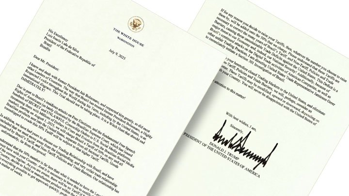 N carta, enviada ao governo brasileiro e publicada no perfil de Trump no Truth Social, o presidente dos Estados Unidos enumera, além das questões comerciais, uma série de razões políticas e ideológicas para justificar a taxação, que passa a valer a partir de 01 de agosto.