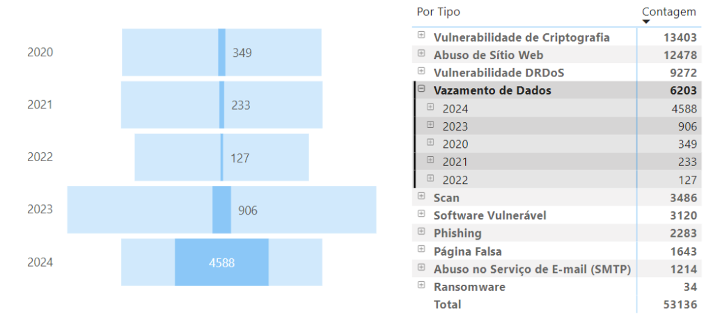 Os casos de vazamento de dados sob responsabilidade do poder público dispararam em 2024, segundo o monitoramento do CTIR Gov, o Centro de Prevenção, Tratamento e Resposta a Incidentes Cibernéticos do Governo.