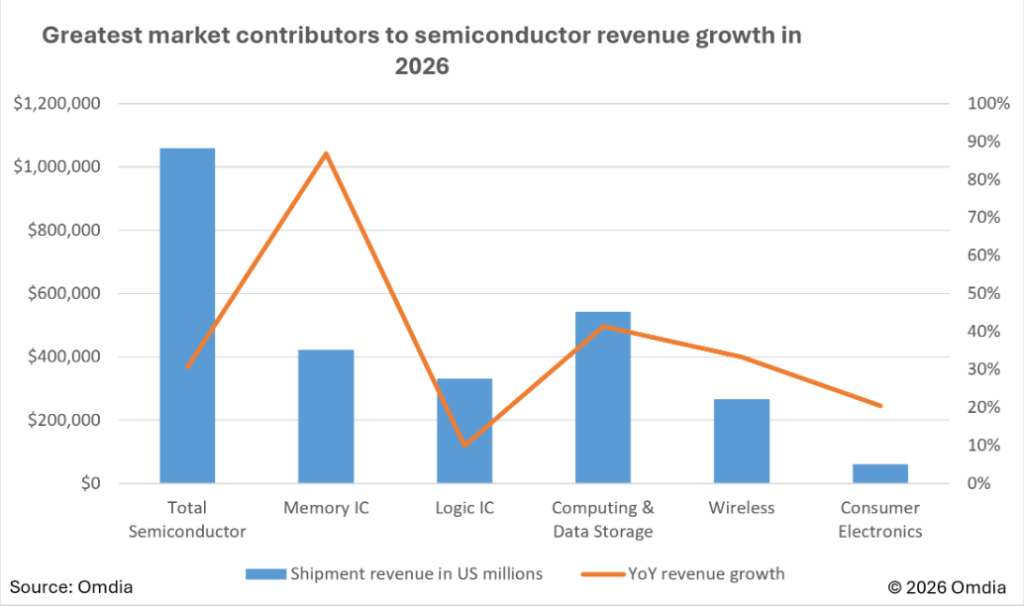 A indústria global de semicondutores deve superar pela primeira vez a marca de US$ 1 trilhão em receitas em 2026, segundo a mais recente análise de mercado da consultoria Omdia. O crescimento histórico será sustentado principalmente pelo avanço acelerado dos chips de memória e lógica, impulsionados pela forte demanda de aplicações de inteligência artificial.