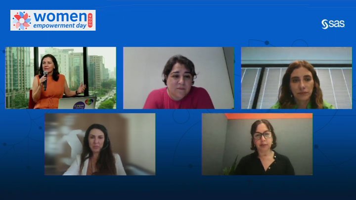 A presença feminina em cargos do alto escalão ainda é bem inferior a dos homens e é hora de abraçar as oportunidades, sustentam Vanesa Bustamante, da HDI, Claudine Bayma, do Kwai, Cintia Silvestre, do Banco BMG e Rita Carvalho, do Itaú. Elas participaram do SAS Women Empowerment Day 2024.