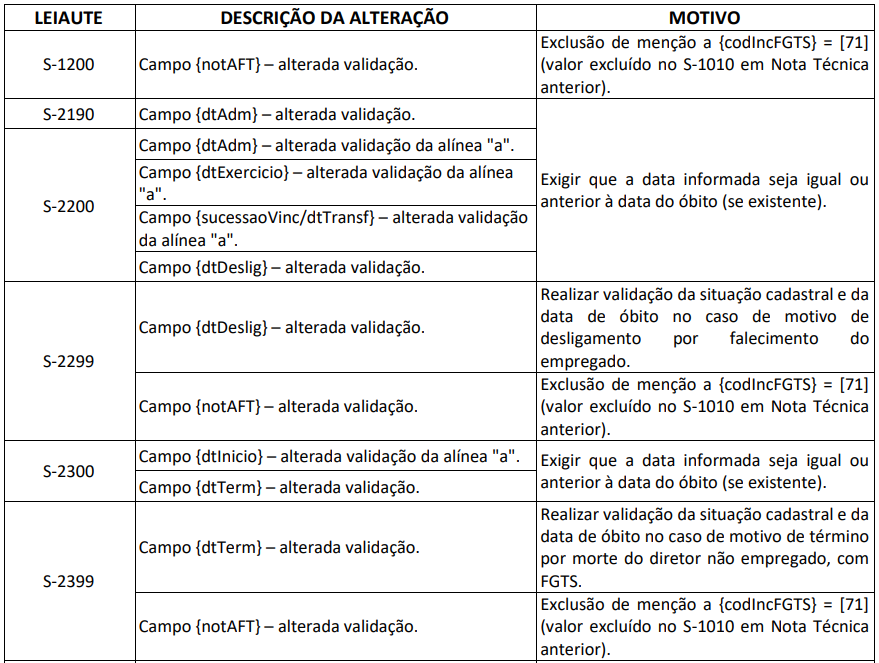 A atualização envolve modificações relevantes em eventos periódicos, não periódicos e de processos trabalhistas, com destaque para validações relacionadas a óbito, FGTS, classificação tributária e precatórios da Justiça Comum.