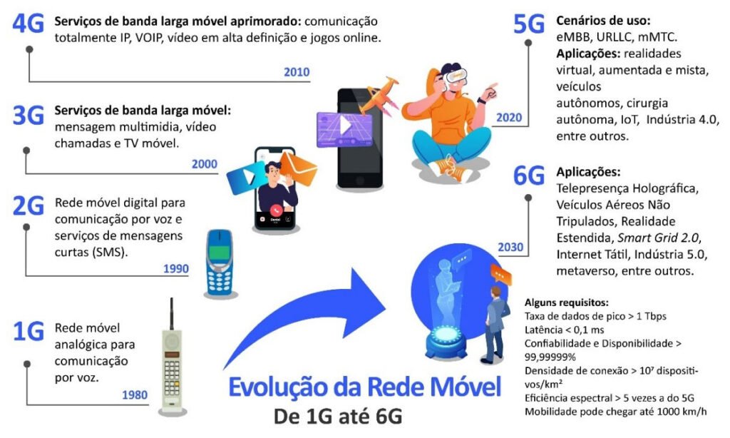 Diante desse cenário, pesquisadores já estão direcionando seus estudos para a futura rede de comunicação, para atender às demandas de serviços projetados para a década de 2030. Hoje, os avanços mais significativos em redes móveis visam acomodar um aumento exponencial no tráfego e na necessidade por conectividade. No entanto, as diretrizes para as redes 6G são ainda mais ambiciosas, ao buscar introduzir funcionalidades inovadoras que superam as expectativas estabelecidas pelo IMT-2020 (International Mobile Telecommunications-2020).